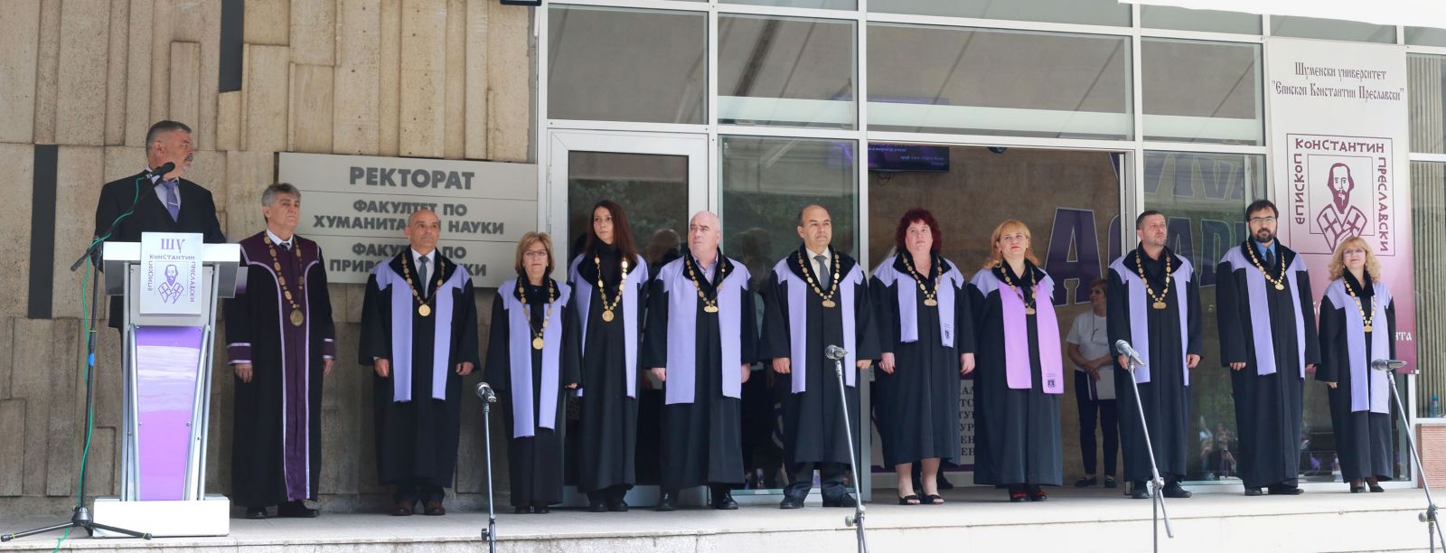 В празничния ден присъстващите приветства ректорът проф. д.и.н. Георги Колев: Скъпи абсолвенти, днес вие не просто получавате само заветната диплома, към която сте се стремили и сте полагали усилия цели 4 години. С тази диплома вие трябва да доказвате, че сте възпитаници на Шуменския университет и цял живот вие ще сте посланици на идеите, заложени в нашия университет. На добър час!